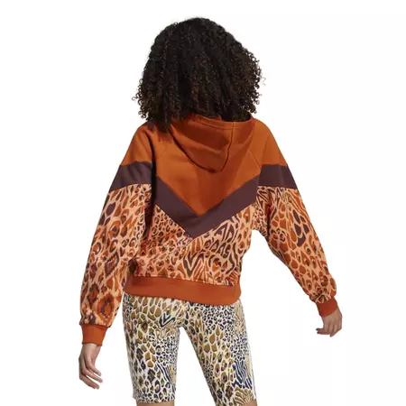 Ce sweat à capuche de la collection Adidas x FARM Rio vous offre le confort que vous recherchez à l'intérieur comme à l'extérieur de la maison. Il présente une coupe ample et un imprimé inspiré de la jungle brésilienne qui ajoute une touche vibrante à votre style. Les manches chauve-souris vous permettent de bouger librement, tandis que le tissu peluche offre un toucher très doux.