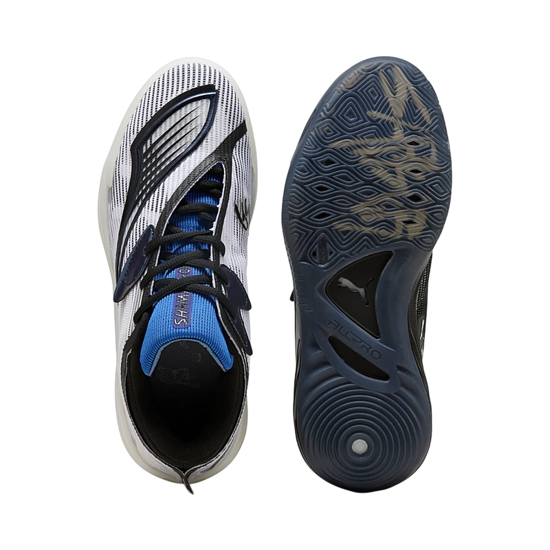 La All-Pro NITRO™ 2 Shammgod révolutionne la chaussure de basketball. Conçue en hommage au légendaire joueur PUMA et entraîneur NBA, elle s'inspire de sa créativité sur le terrain et de son style de jeu iconique. Ornée du slogan « SHADOW SHAKER », elle rend hommage à son agilité et à son imprévisibilité, évoquant ses entraînements nocturnes sous les projecteurs de Harlem.