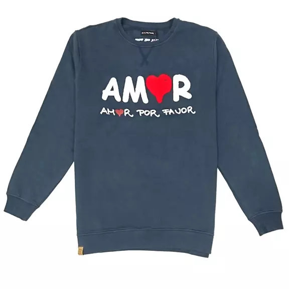 - Sur le devant, le logo Amor Por Favor est mis en évidence, dans une combinaison de broderie (type de serviette) et d'impression.