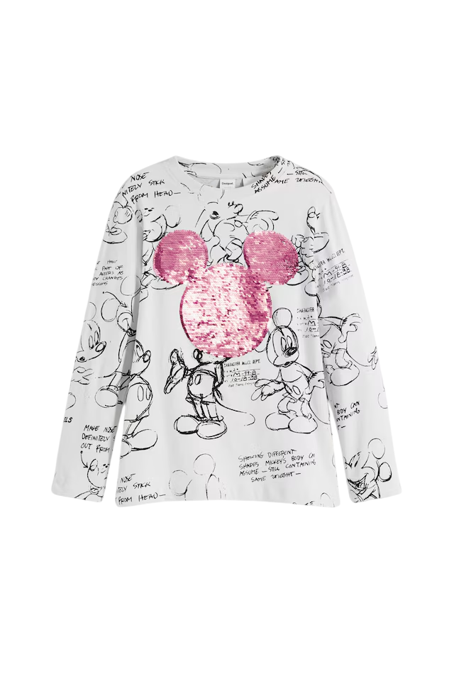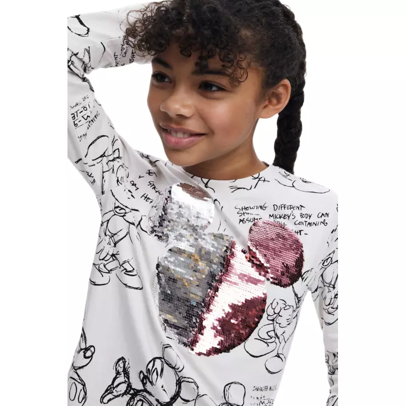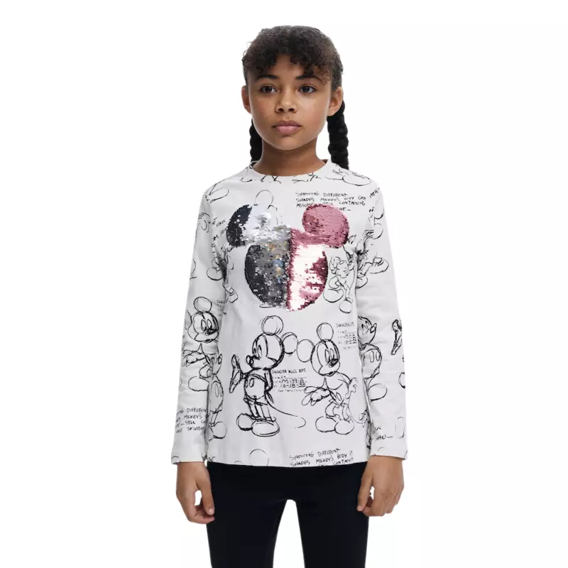 - Design Unique : Doté d'un motif de Mickey Mouse embelli de sequins, ce t-shirt capte immédiatement l'attention.