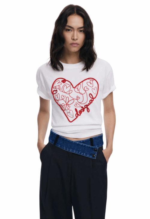 T-shirt Desigual "Coeurs en Relief" - Blanc