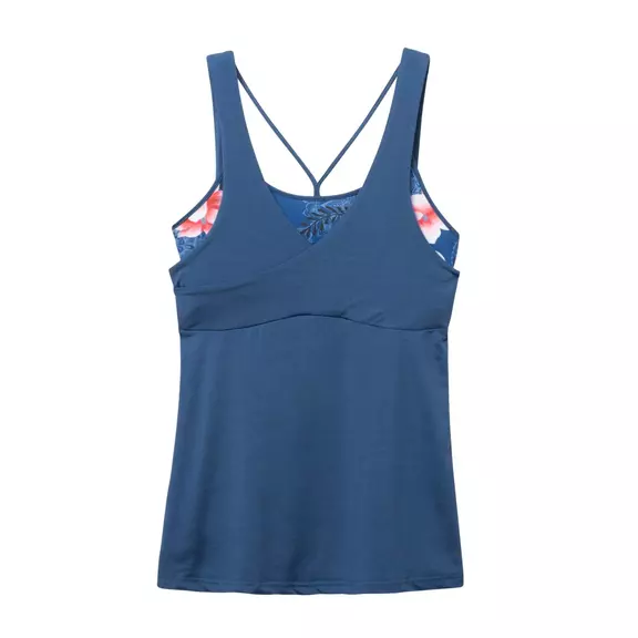 Débardeur bleu en tendance multicouche. Il semble que deux pièces soient délicieusement combinées: un haut sportif avec des couleurs subtiles imprimées sous une chemise fine qui mettra en valeur votre silhouette grâce à sa croisade sur le devant. Choisissez un pantalon qui complète le look athleisure.