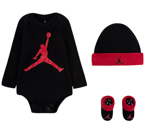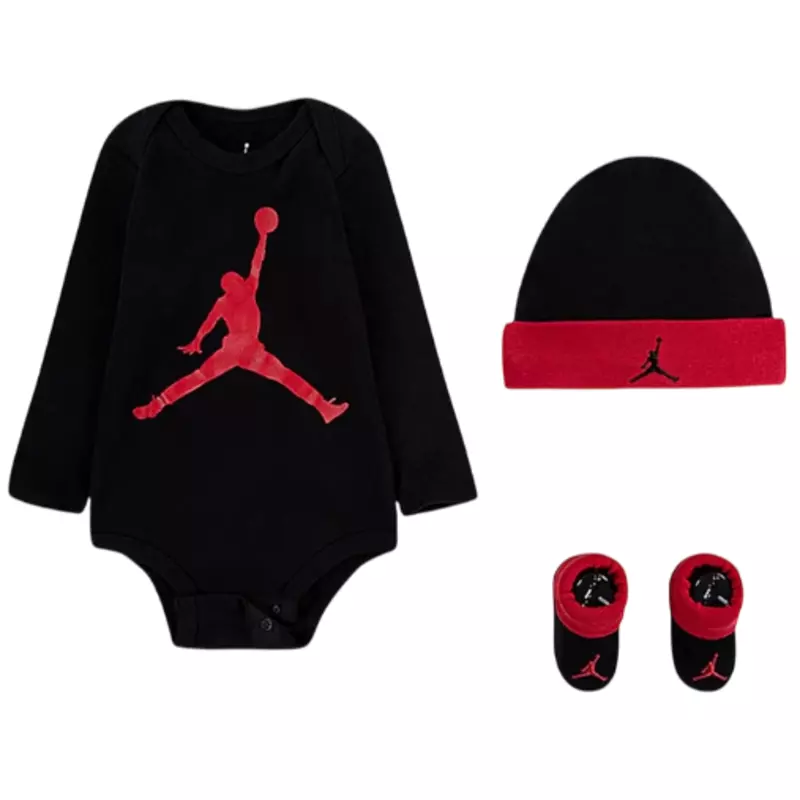 Jordan JHN Jumpman Infants Hat/Bodysuit long sleeve/Bootie Set 3pc "Black Red"
