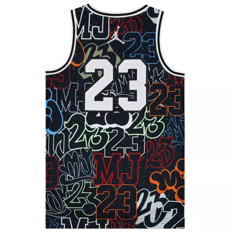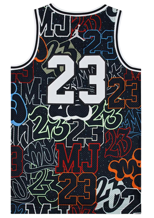 Ce maillot est inspiré de celui que Michael Jordan portait au cours de sa légendaire carrière de basketteur, avec un imprimé bleu, noir et blanc sur toute la surface. Il est fabriqué en maille tricotée respirante avec une coupe régulière qui est aussi confortable sur le terrain ou associée à votre jean préféré pour un look urbain moderne.