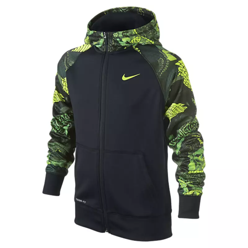 - Tejido: Cuerpo: Therma-FIT 100% poliéster. Forro de la capucha/cuello: 100 % poliéster.