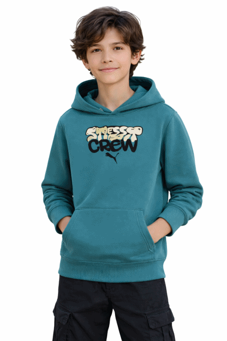 Le sweat à capuche Puma MID90s TR B pour garçon, coloris Emerald Ice, est idéal pour ceux qui recherchent un vêtement alliant confort et style urbain. Ce sweat est confectionné en molleton doux et isolant, parfait pour les activités de plein air comme pour le quotidien. Sa coupe classique offre une grande liberté de mouvement, idéale pour les enfants actifs. Avec ses manches longues et sa poche kangourou pratique, il permet de ranger de petits objets ou de garder les mains au chaud. Sa durabilité est un atout majeur : fabriqué avec des matériaux de haute qualité, il résiste à l'usure du quotidien. C'est un vêtement polyvalent, adapté à toutes les occasions, des sorties décontractées aux activités sportives.